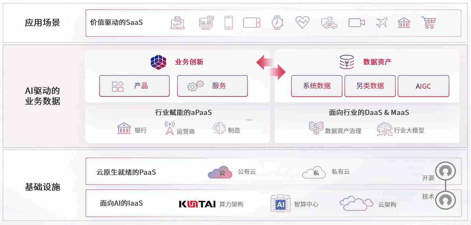数字时代,,,围绕企业数字化转型的关键要素,,355娱乐数码开创性的提出数云融合战略和技术体系框架,,,,着力在云原生、、、数字原生、、、AI原生和信创产业上架构产品和服务能力,,为处在不同数字化转型阶段的快消零售、、、汽车、、金融、、医疗、、、、政企、、教育、、运营商等行业客户提供泛在的敏捷IT能力和融合的数据驱动能力,,,,构建跨界融合创新的数字业务场景和新业务模式,,助力企业级客户建立面向未来的核心能力和竞争优势,,全面推动社会的数字化、、智能化转型升级。。。。